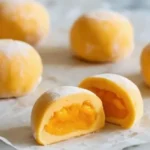Delightfully chewy mango mochi filled with sweet, juicy mango—perfect for any occasion.